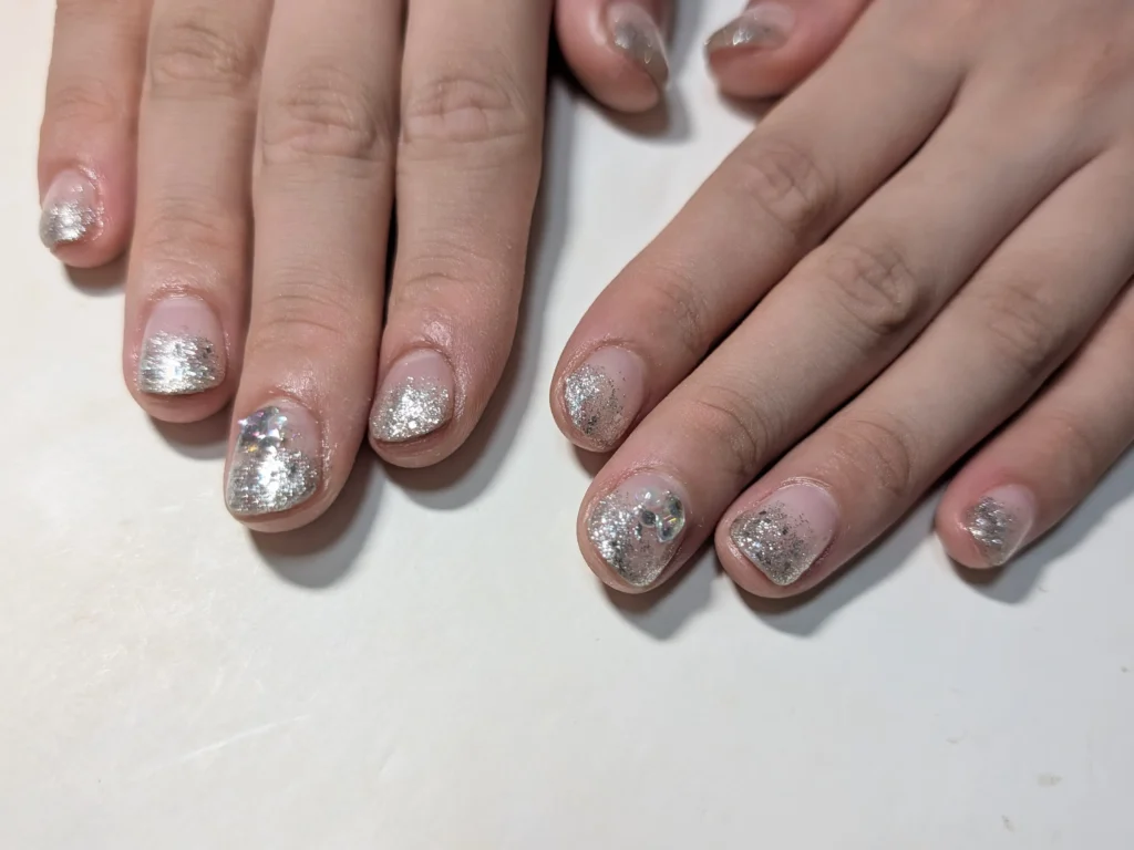 パール/ラメグラデーション1色のみ 2025年10月20日 リヒロ 鳥栖のネイルサロン☆★ネイル&フラワーサロン〜Ri•hiro〜平田です。いつもブログ見て頂き、ありがとうございます♡ お客様ネイルのご紹介です↓↓ 今回は、グラデーションのお客様☆★シルバーラメカラー★オプションでストーンを☆★ 素敵な時間をありがとうございました!またのご来店お待ちしています。 予約はこちら