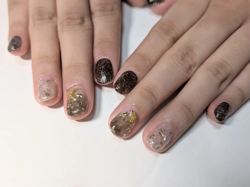 リピーター様★前回当店来店の方【相談】 2025年10月23日 リヒロ 鳥栖のネイルサロン☆★ネイル&フラワーサロン〜Ri•hiro〜平田です。いつもブログ見て頂き、ありがとうございます♡ お客様ネイルのご紹介です↓↓ リピーターさんのみのご相談デザイン★ご提案画像参考に☆ブラウンキラキラ☆スター☆ネイルです!! いつもご来店ありがとうございます!また、次回もよろしくお願い致します 予約はこちら