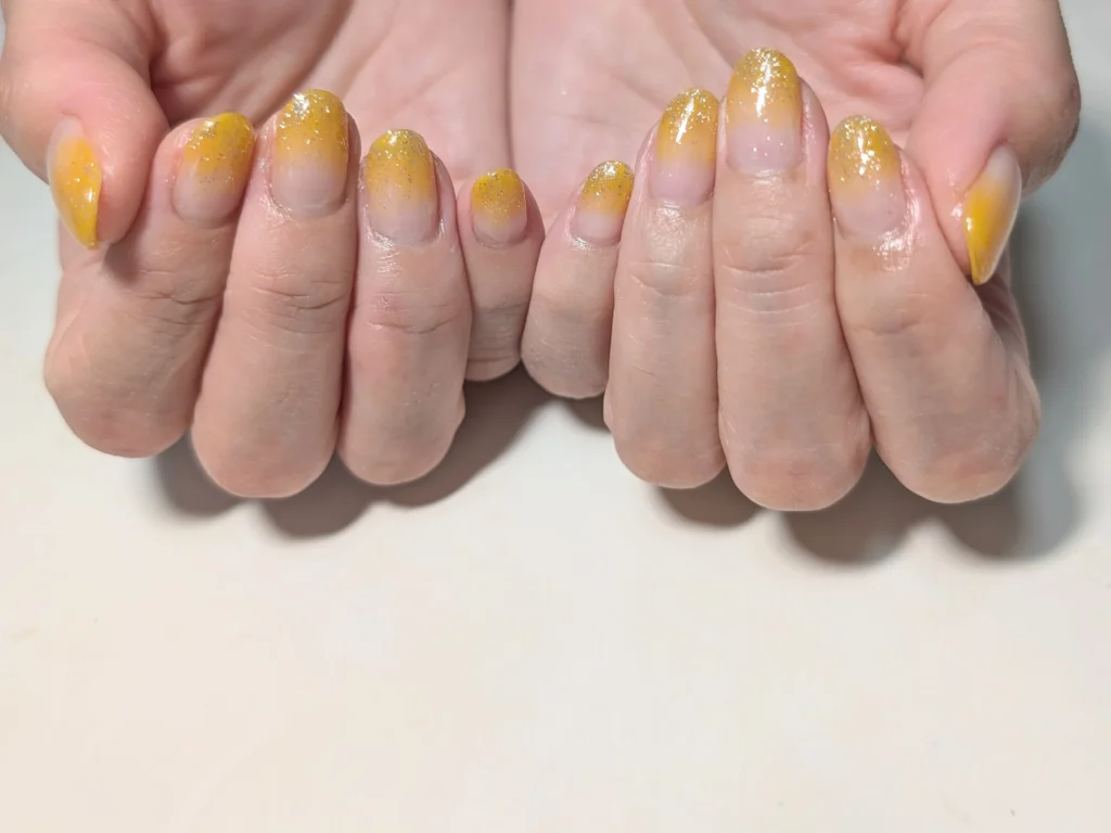 パール/ラメグラデーション1色のみ 2025年11月12日 リヒロ 鳥栖のネイルサロン☆★ネイル&フラワーサロン〜Ri•hiro〜平田です。いつもブログ見て頂き、ありがとうございます♡ お客様ネイルのご紹介です↓↓ 今回は、グラデーションのお客様☆★秋カラー★マスタードカラーに、オプションでキラキラネイルに仕上げました★ 素敵な時間をありがとうございました!またのご来店お待ちしています。 予約はこちら