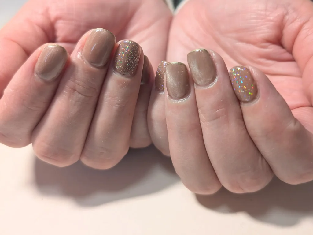 冬ネイルのお客様!!ブラウン✕オーロラキラキラネイル☆